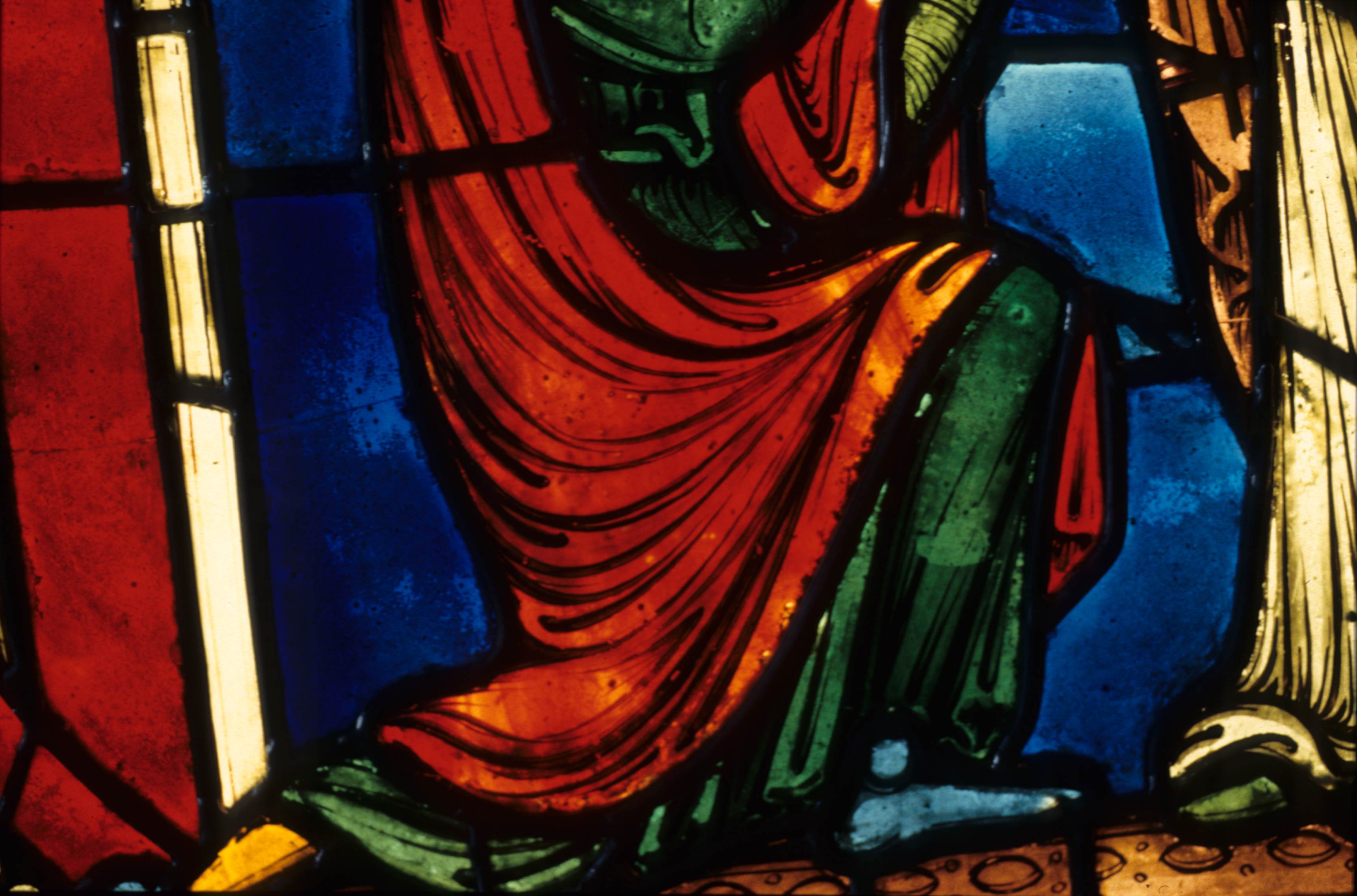 Description : la Vierge apparaît à Théophile : Théophile agenouillé (détail)