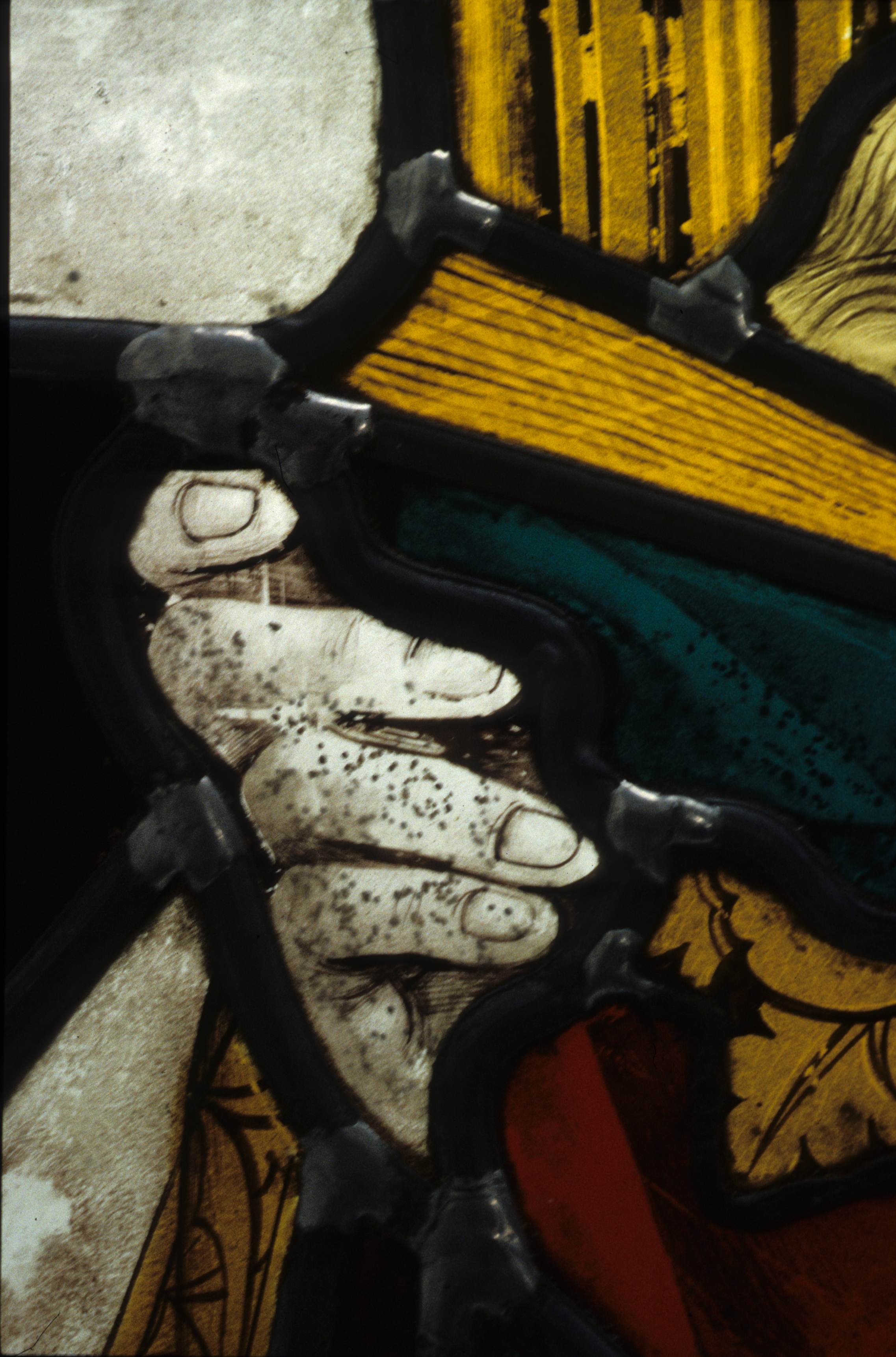 Description : Annonciation : détail des mains de la Vierge tenant un livre