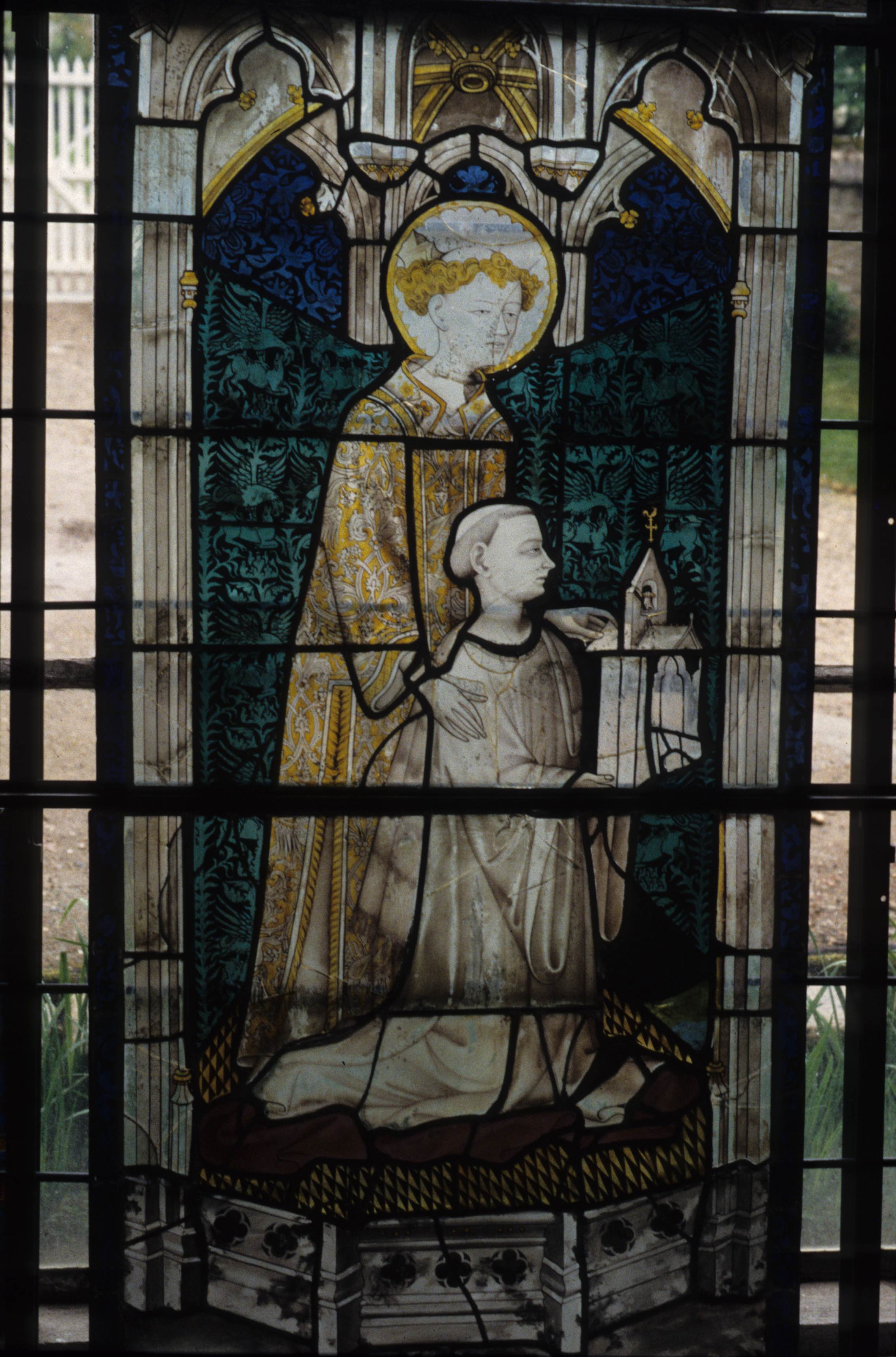Description : saint Etienne présentant le donateur Pierre Trousseau, tenant la maquette d'une église
