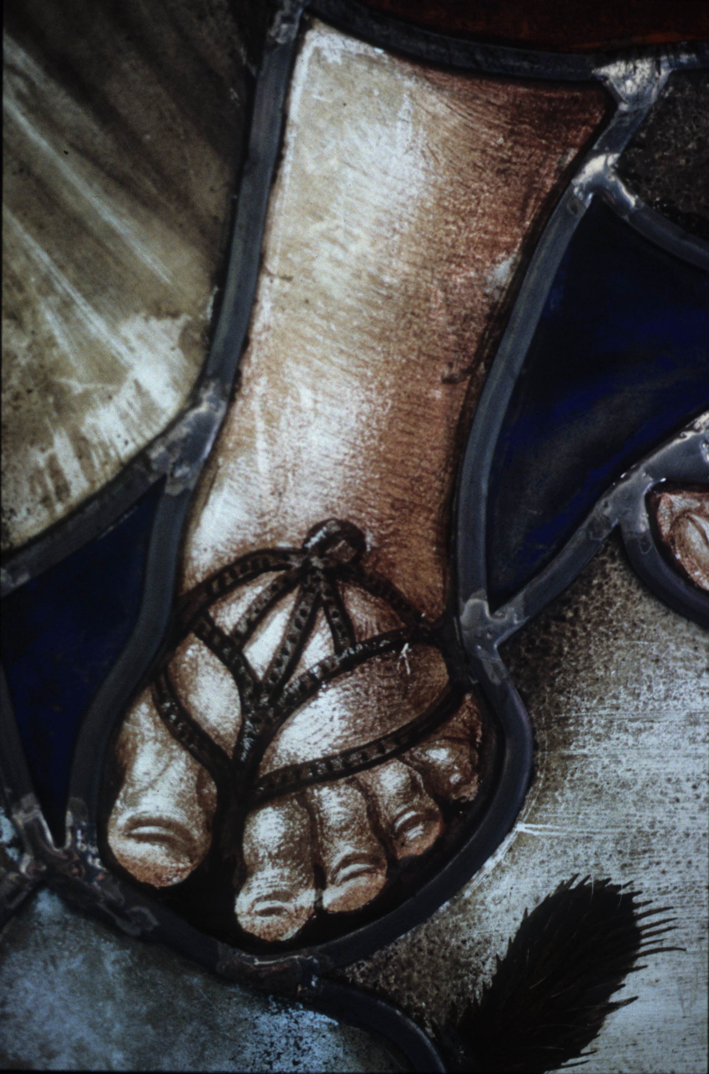 Description : quatre chanoines (Guillaume de Castello, Pierre Mathé, Pierre-Jean et Pierre Tullier) présentés par saint Jacques le Majeur : détail du pied du saint