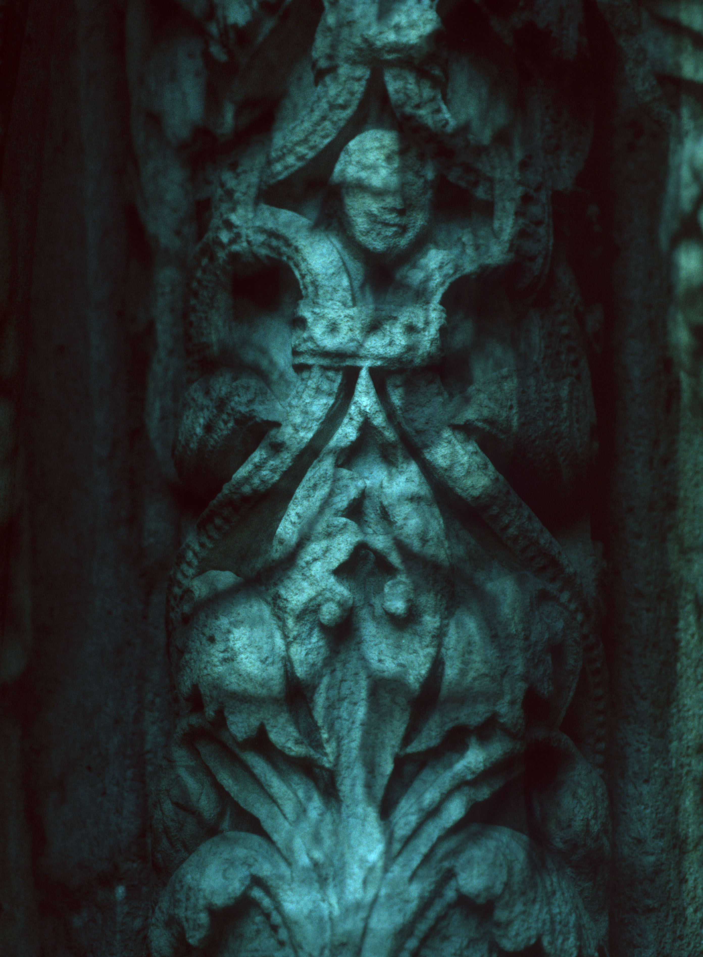 Chartres, Notre-Dame - Portail royal, portail droit, ébrasement, colonnette, détail : rinceaux peuplés
