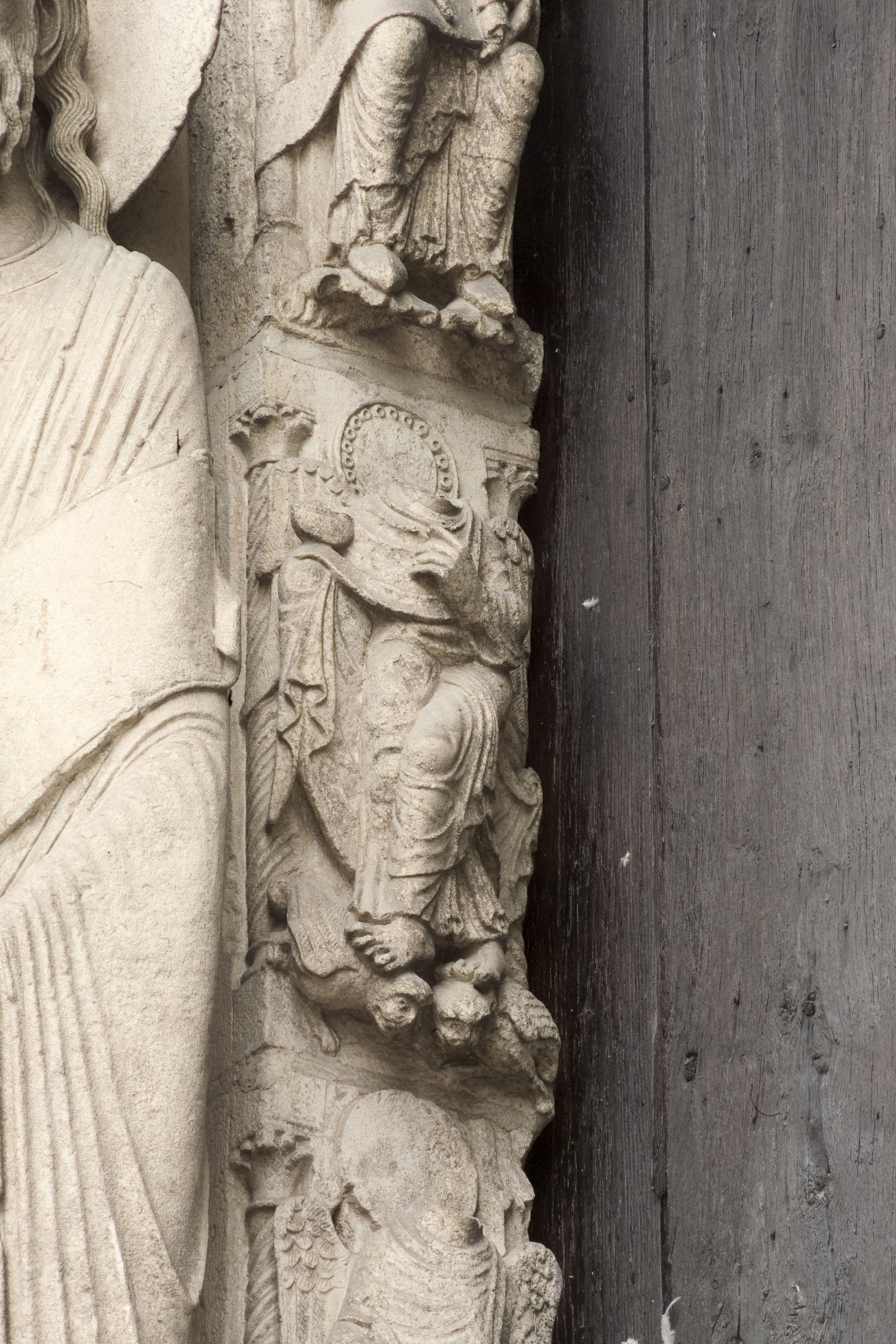 Chartres, Notre-Dame - Portail royal, portail central, piédroit : ange (envoyé purifier les lèvres d'Isaïe ?)