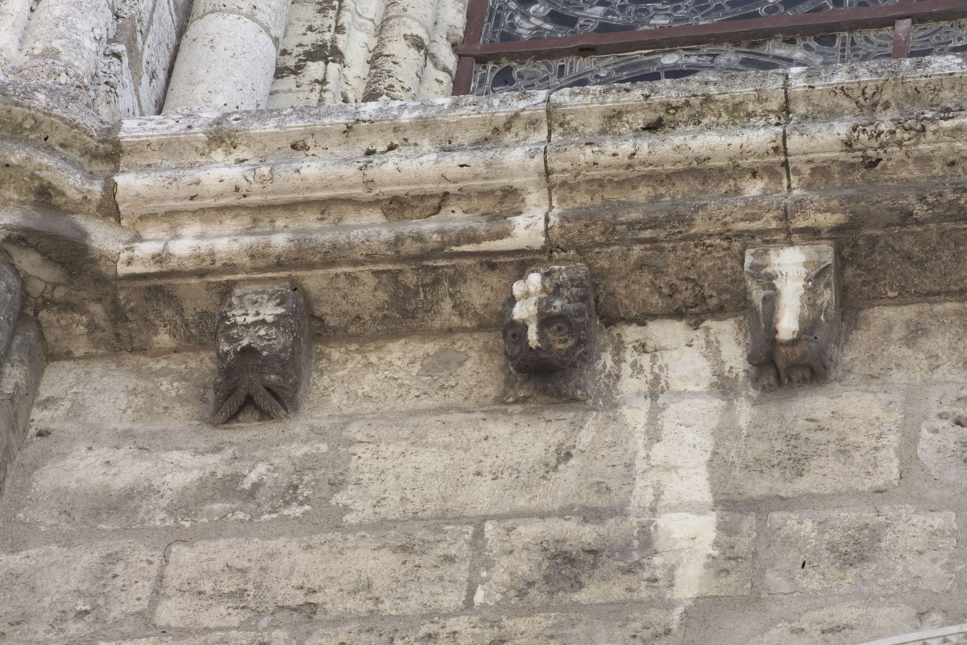 Chartres, Notre-Dame - Façade occidentale, corniche surplombant le Portail royal, modillons