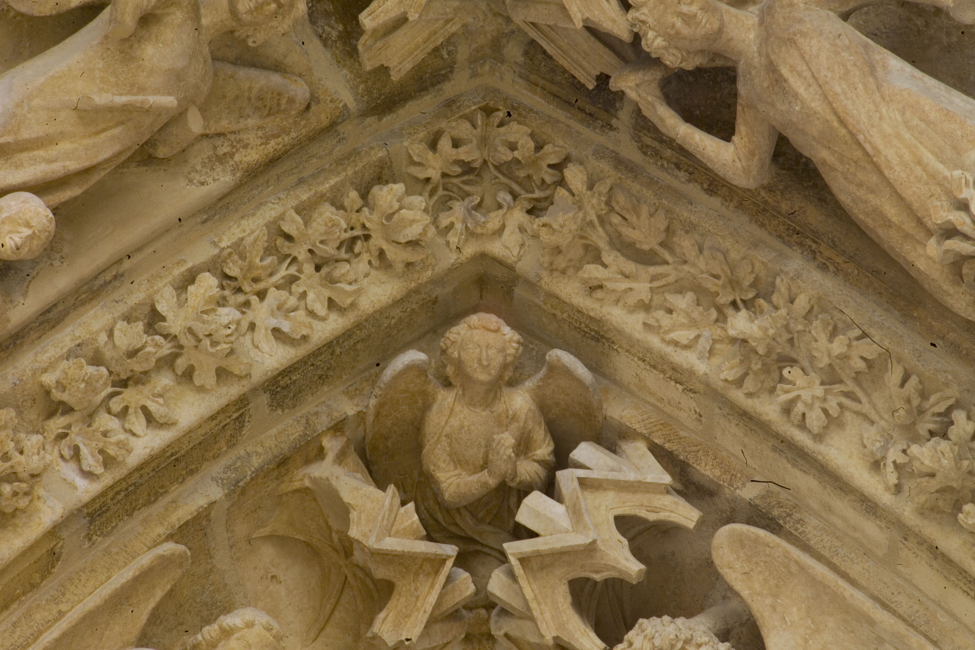 Reims, Notre-Dame - Portail occidental sud, clé de voussure : ange