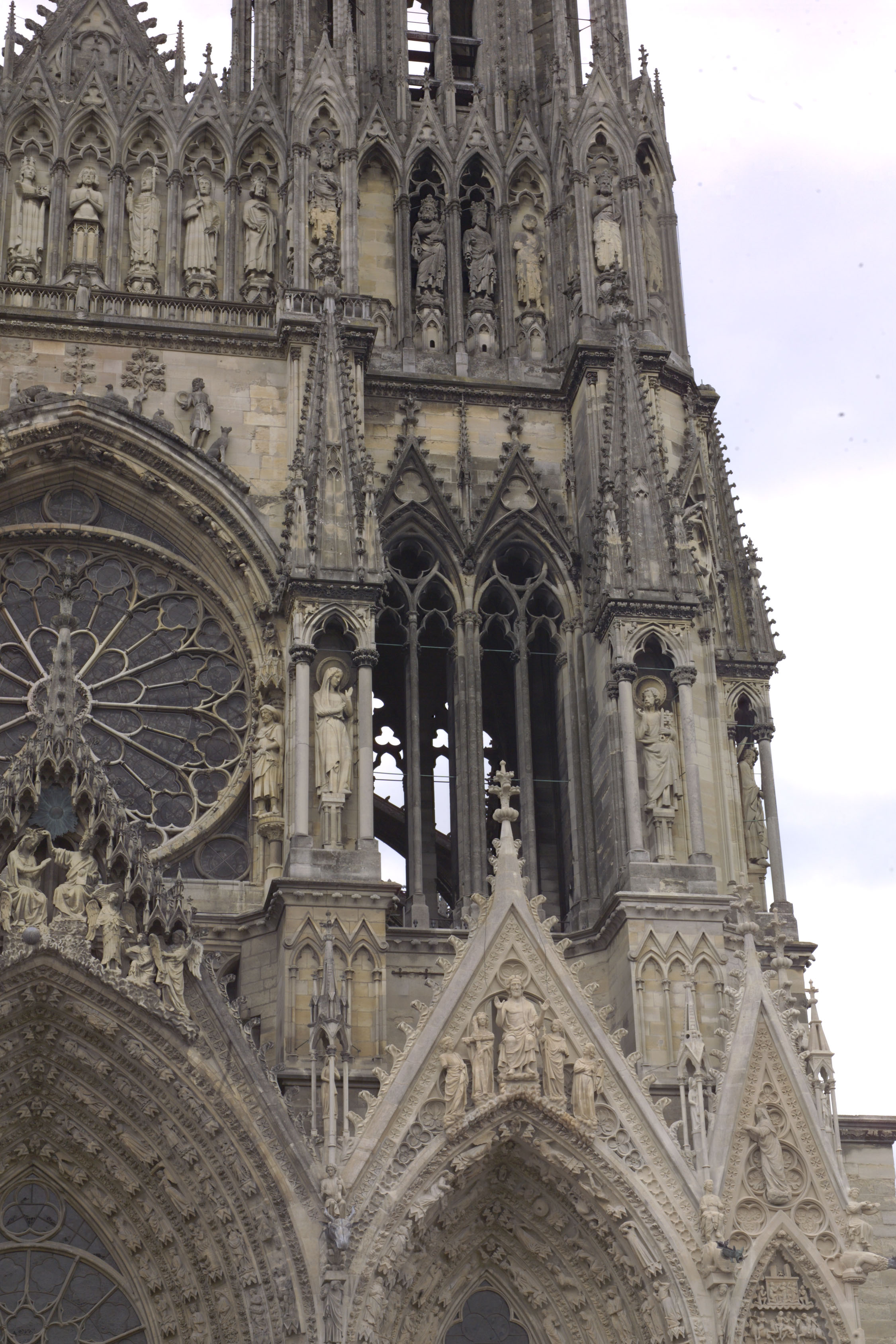 Reims, Notre-Dame - Façade occidentale, côté sud, étage de la rose et gâbles