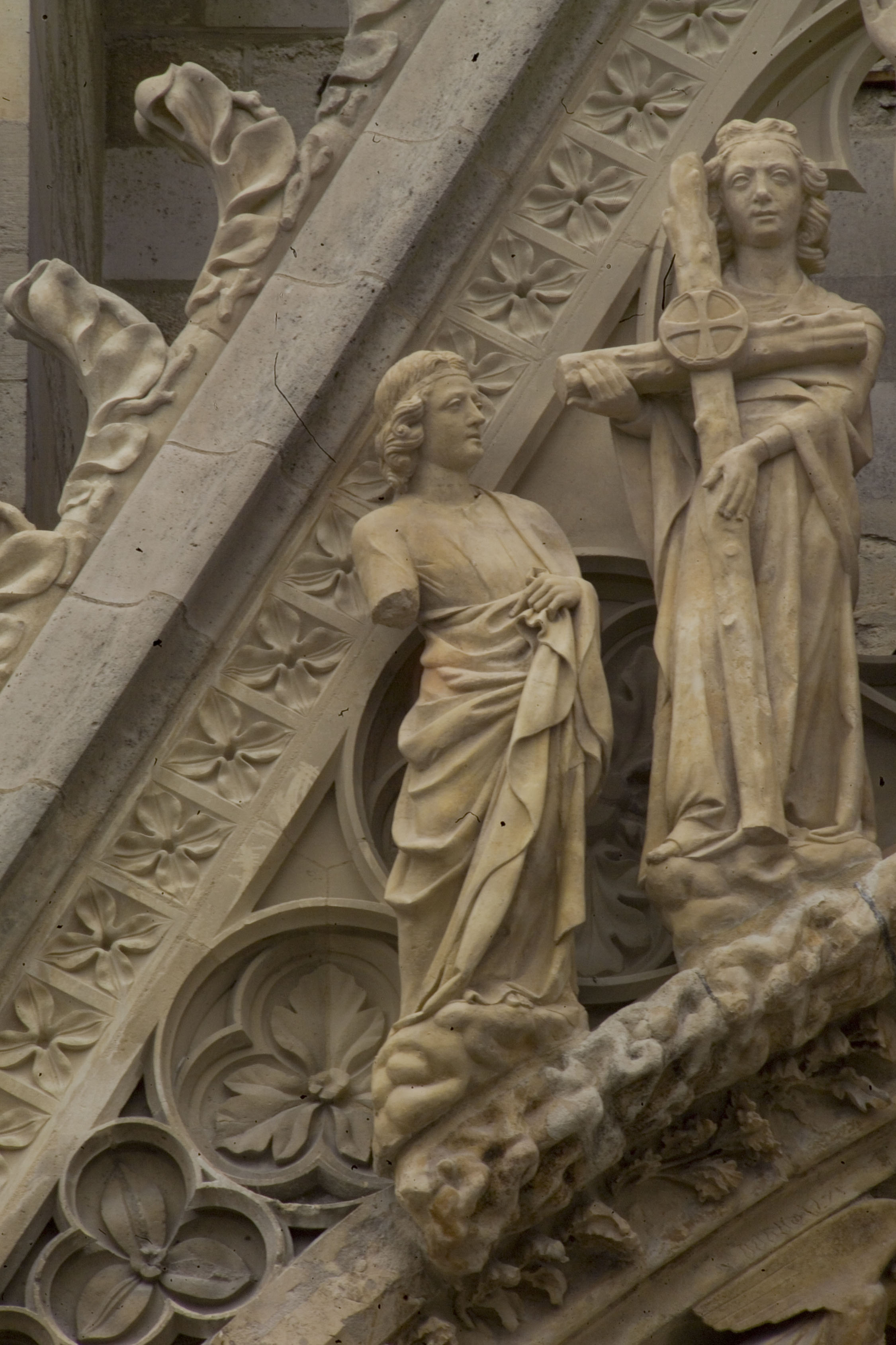 Reims, Notre-Dame - Portail occidental sud, gâble : deux anges portant les instruments de la Passion