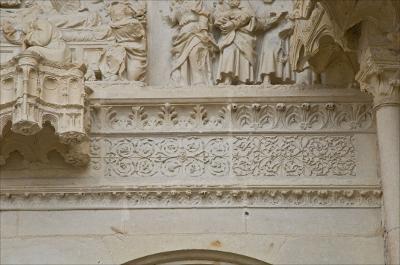 Bourges, Saint-Étienne - Portail de la Vierge, partie médiane supérieure (linteau et tympan, niveau supérieur des ébrasements)
